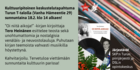 "Oi niitä aikoja!" -kirjan kirjoittaja Tero Heinänen esittelee T-talolla 18.2. klo 14 teostaan sekä nostalgisia venäläis- ja neuvostolauluja. Keskustelua kirjan teemoista höystää musiikki. Kahvitarjoilu. Tervetuloa viettämään sunnuntaita kulttuurin parissa!